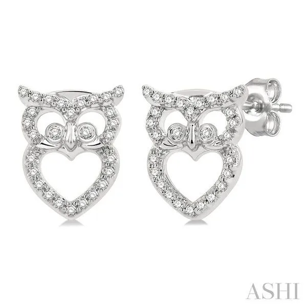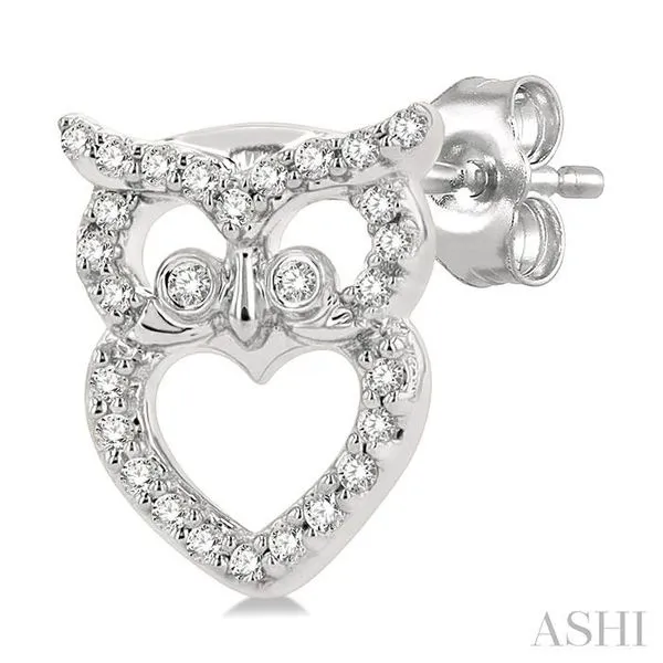 1/6 Ctw Petite Owl Round Cut Diamond Fashion Stud Earring in 10K White Gold Image 4 Adler's Diamonds Saint Louis, MO