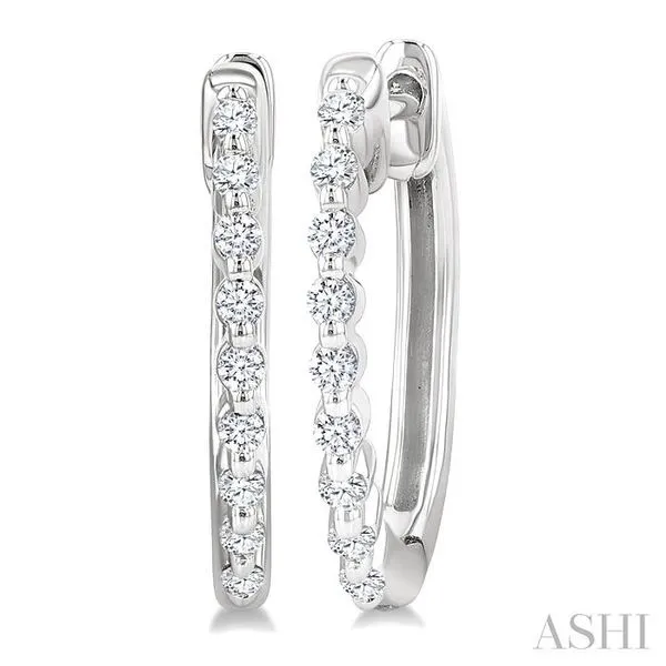 1/6 Ctw Petite Shared Prong Round Cut Diamond Hoop Earring in Sterling Silver Image 3 Adler's Diamonds Saint Louis, MO