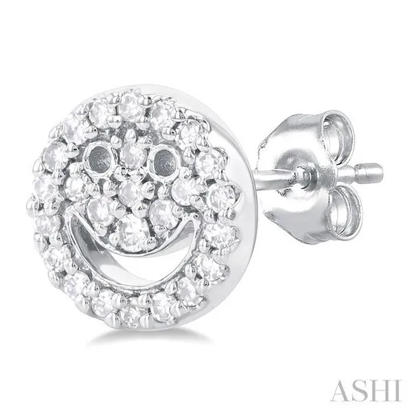1/6 Ctw Petite Smiley Round Cut Diamond Fashion Stud Earring in 10K White Gold Image 2 Adler's Diamonds Saint Louis, MO