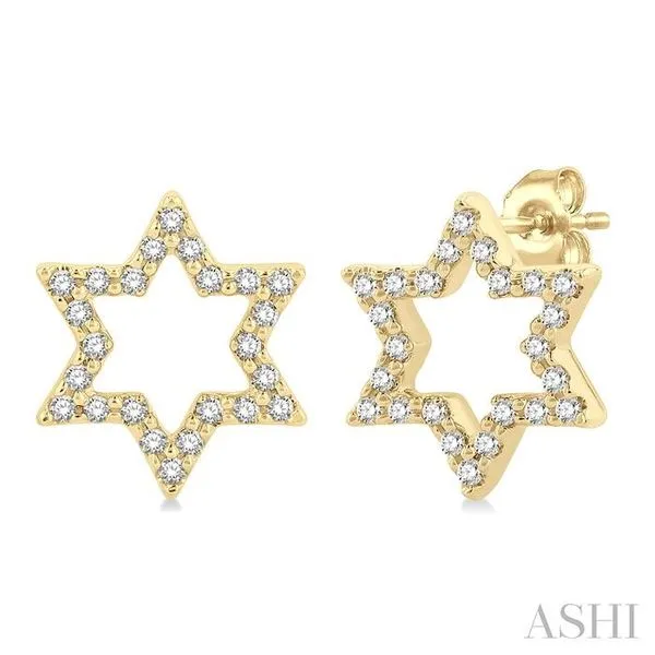 1/6 Ctw Petite Star of David Round Cut Diamond Fashion Stud Earring in 10K Yellow Gold Image 2 Adler's Diamonds Saint Louis, MO