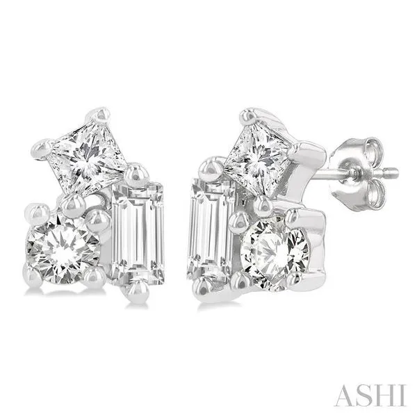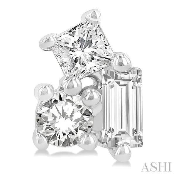 1/6 Ctw Petite Tri-Stone Scatter Princess, Baguette & Round Cut Diamond Fashion Stud Earring in 10K White Gold Adler's Diamonds Saint Louis, MO