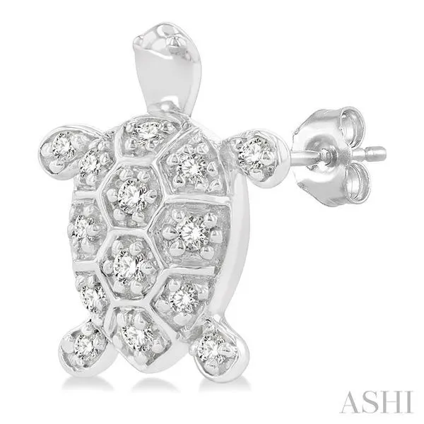 1/6 Ctw Petite Turtle Round Cut Diamond Fashion Stud Earring in 10K White Gold Image 3 Adler's Diamonds Saint Louis, MO