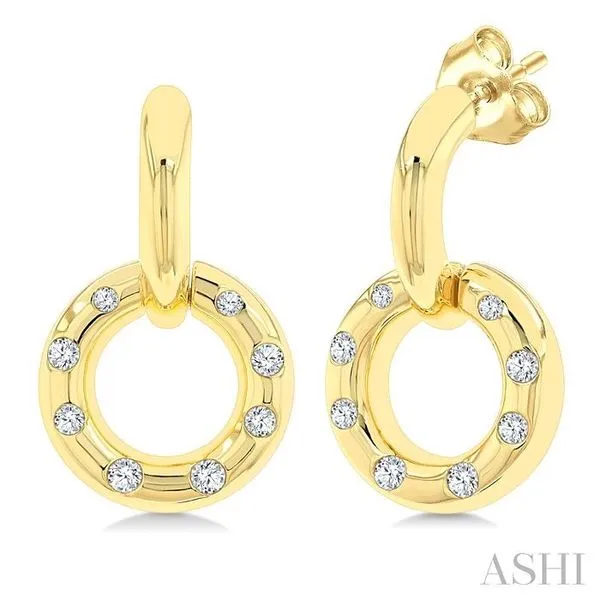1/6 Ctw Round Cut Diamond Circle Fashion Earrings in 10K Yellow Gold Image 2 Adler's Diamonds Saint Louis, MO