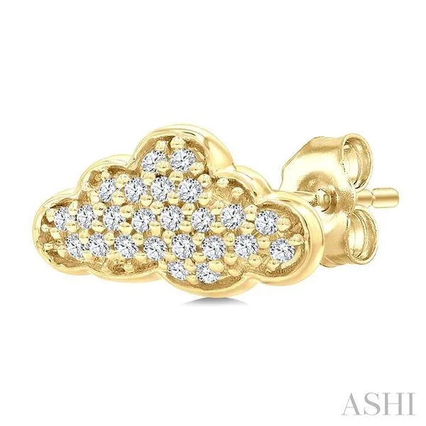1/6 Ctw Round Cut Diamond Cloud Petite Earrings in 10K Yellow Gold Image 2 Adler's Diamonds Saint Louis, MO