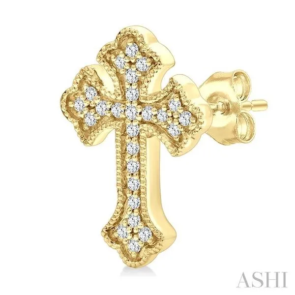 1/6 Ctw Round Cut Diamond Cross Petite Fashion Earrings in 10K Yellow Gold Image 3 Adler's Diamonds Saint Louis, MO