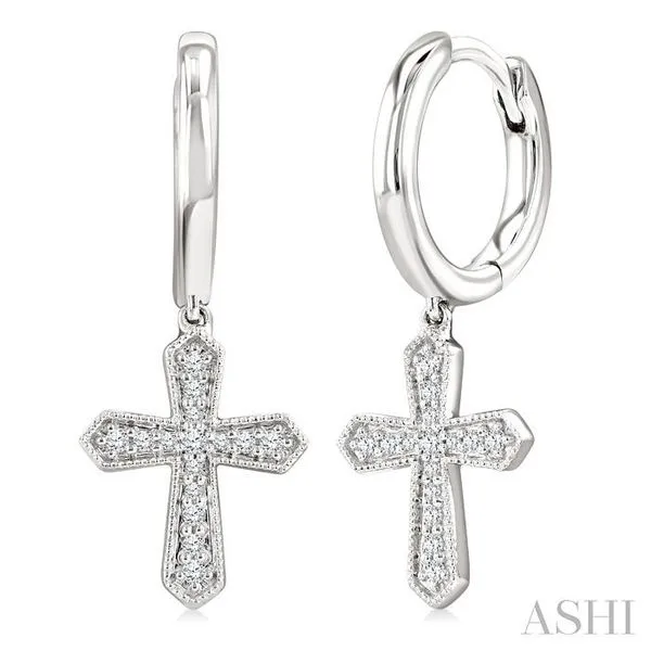 1/6 Ctw Round Cut Diamond Cross Petite Fashion Huggies Earrings in 10K White Gold Image 3 Adler's Diamonds Saint Louis, MO