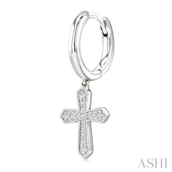 1/6 Ctw Round Cut Diamond Cross Petite Fashion Huggies Earrings in 10K White Gold Image 2 Adler's Diamonds Saint Louis, MO