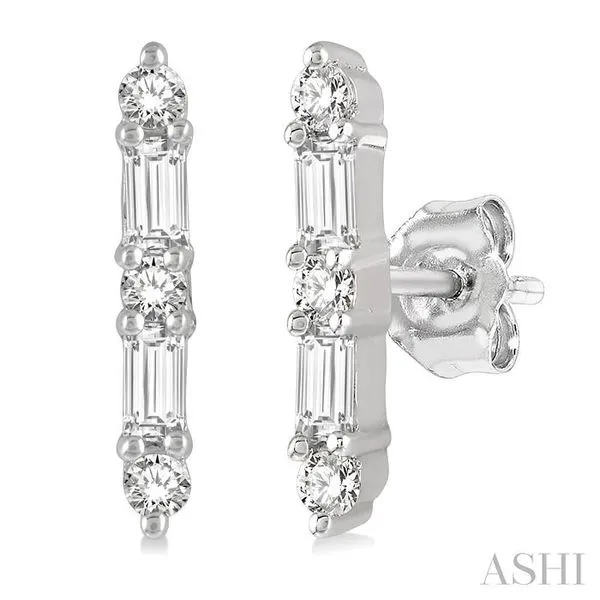 1/6 Ctw Solid Bar Baguette and Round Cut Diamond Petite Earring in 10K White Gold Adler's Diamonds Saint Louis, MO