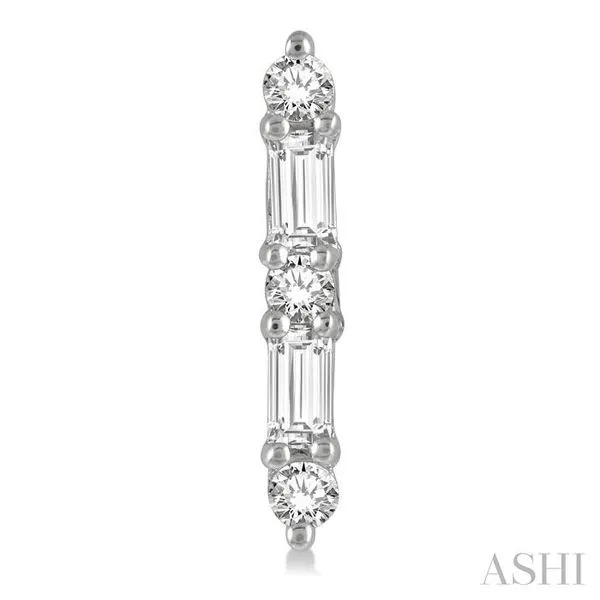 1/6 Ctw Solid Bar Baguette and Round Cut Diamond Petite Earring in 10K White Gold Image 2 Adler's Diamonds Saint Louis, MO