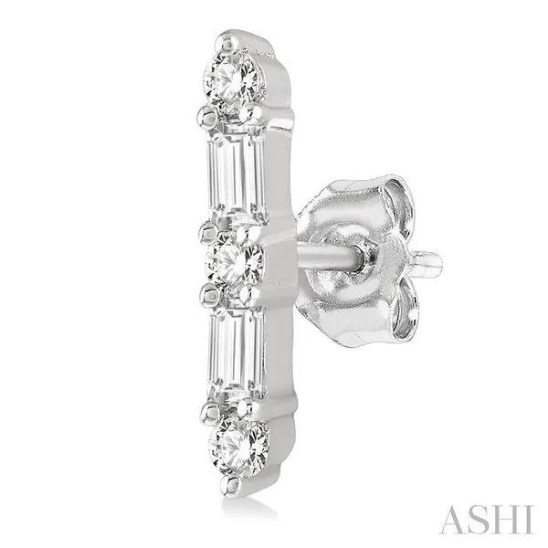 1/6 Ctw Solid Bar Baguette and Round Cut Diamond Petite Earring in 10K White Gold Image 4 Adler's Diamonds Saint Louis, MO