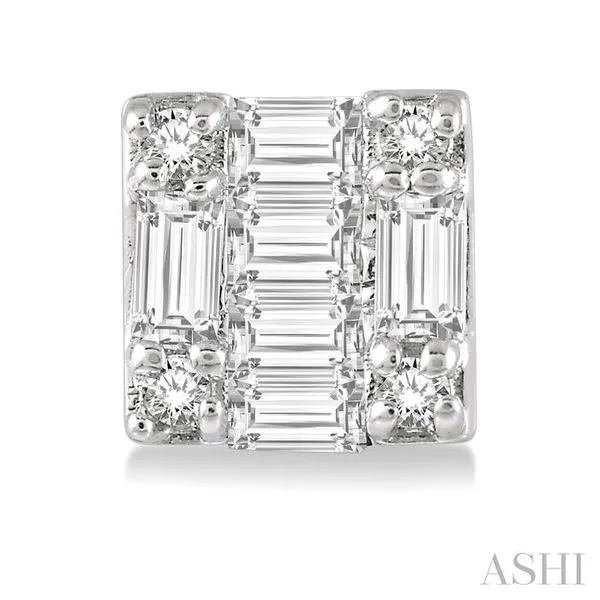 1/6 Ctw Square Shape Baguette and Round Cut Diamond Petite Fashion Earring in 14K White Gold. Adler's Diamonds Saint Louis, MO
