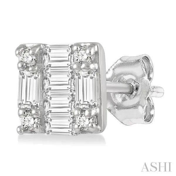 1/6 Ctw Square Shape Baguette and Round Cut Diamond Petite Fashion Earring in 14K White Gold. Image 2 Adler's Diamonds Saint Louis, MO