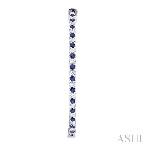 1.6 MM Round Cut Sapphire and 1 Ctw Round Cut Diamond Precious Inside-Out Alternating Hoop Earrings in 14K White Gold Image 2 Adler's Diamonds Saint Louis, MO