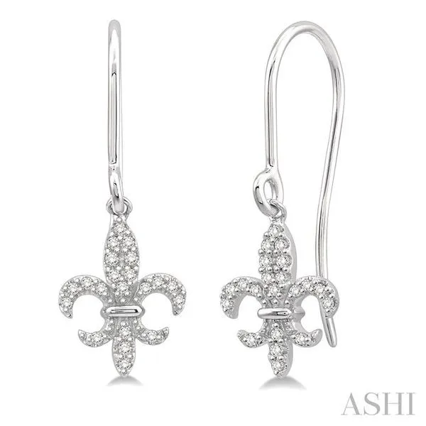 1/8 Ctw Fleur De Lis Round Cut Diamond Earrings in 10K White Gold Adler's Diamonds Saint Louis, MO