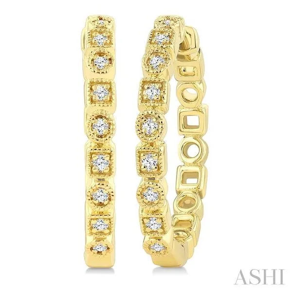 1/8 Ctw Geometric Carving Round Cut Diamond Fashion Hoop Earring in 10K Yellow Gold Adler's Diamonds Saint Louis, MO