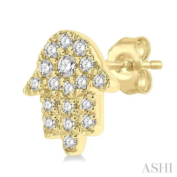 1/8 Ctw Hamsa Round cut Diamond Petite Fashion Earring in 10K Yellow Gold Image 3 Adler's Diamonds Saint Louis, MO