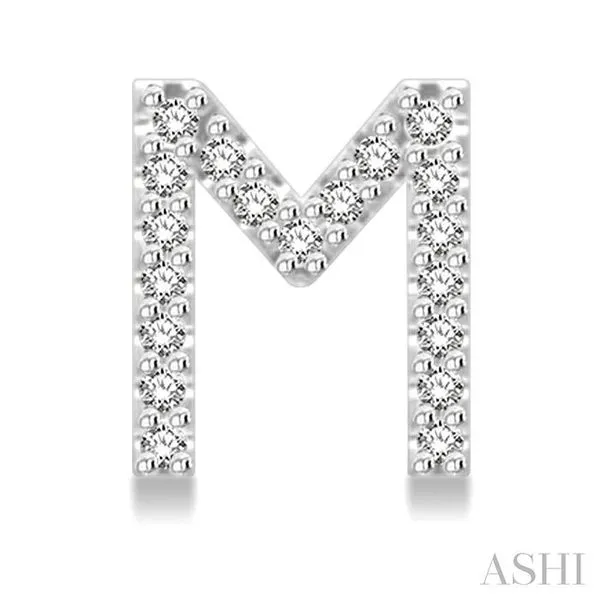 1/8 Ctw Initial 'M' Round Cut Diamond Earrings in 10K White Gold Image 2 Adler's Diamonds Saint Louis, MO
