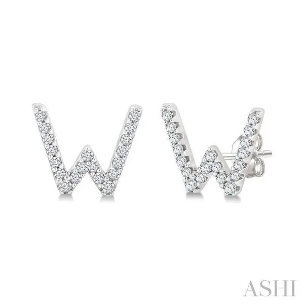 1/8 Ctw Initial 'W' Round Cut Diamond Earrings in 10K White Gold Adler's Diamonds Saint Louis, MO