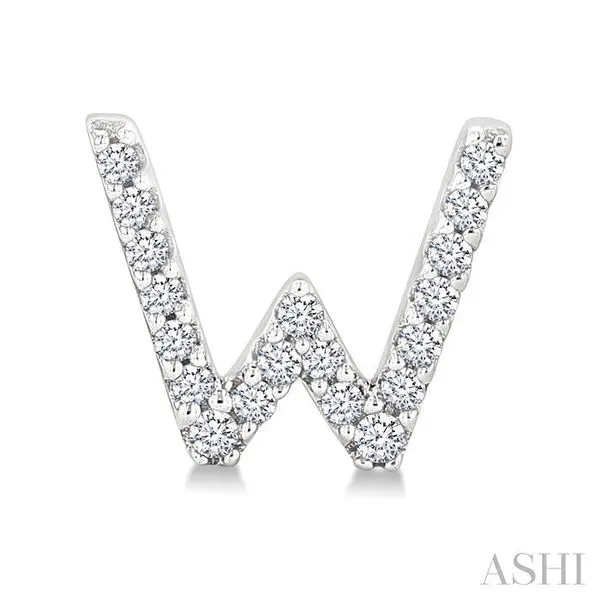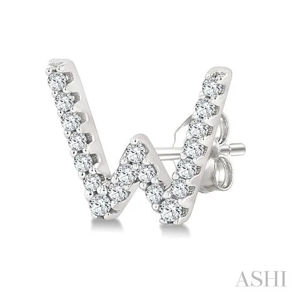 1/8 Ctw Initial 'W' Round Cut Diamond Earrings in 10K White Gold Image 2 Adler's Diamonds Saint Louis, MO