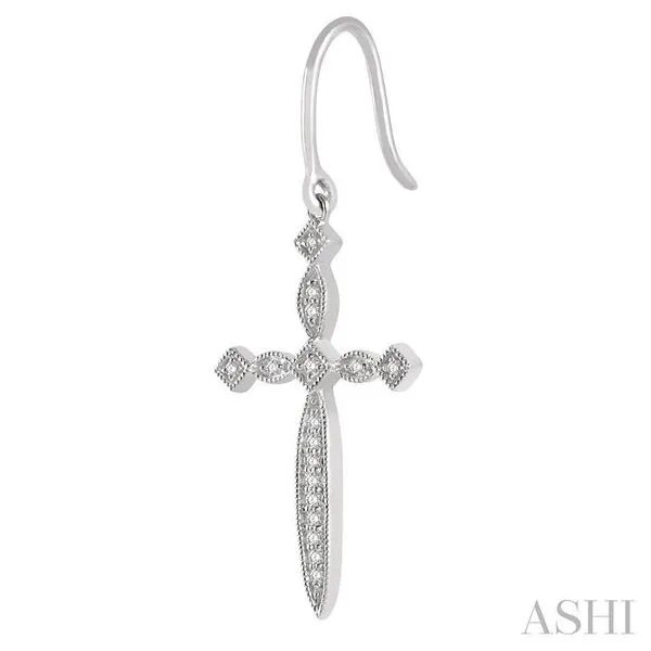 1/8 Ctw Marquise & Diamond Mount Cross Charm Round Cut Diamond Earring in 10K White Gold Image 4 Adler's Diamonds Saint Louis, MO