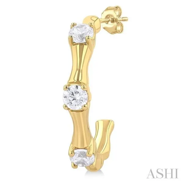 1/8 Ctw Petite Bamboo Shoot Inspired Round Cut Diamond Fashion Half Hoop Earring in 10K Yellow Gold Image 3 Adler's Diamonds Saint Louis, MO