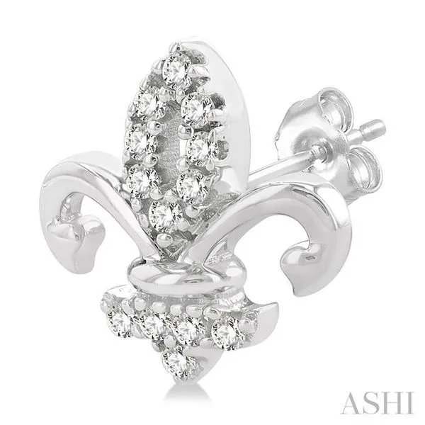 1/8 Ctw Petite Fleur De Lis Round Cut Diamond Fashion Stud Earring in 10K White Gold Image 2 Adler's Diamonds Saint Louis, MO