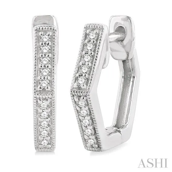 1/8 Ctw Petite Hexagon Round Cut Diamond Fashion Huggies in 10K White Gold Adler's Diamonds Saint Louis, MO