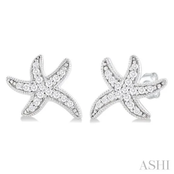 1/8 Ctw Petite Milgrain Starfish Round Cut Diamond Fashion Stud Earring in 10K White Gold Image 2 Adler's Diamonds Saint Louis, MO