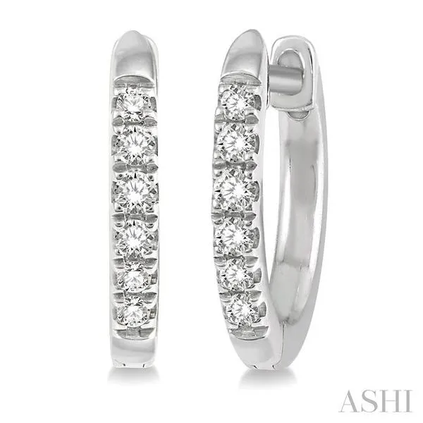 1/8 Ctw Round Cut Diamond Huggie Petite Earrings in 14K White Gold Image 2 Adler's Diamonds Saint Louis, MO