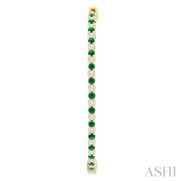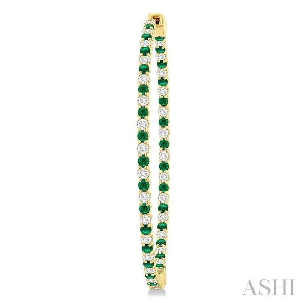 1.8 MM Emerald and Alternating 1 1/2 Ctw Round Cut Inside-Out Diamond Precious Hoop Earrings in 14K Yellow Gold Image 2 Adler's Diamonds Saint Louis, MO