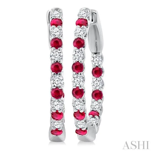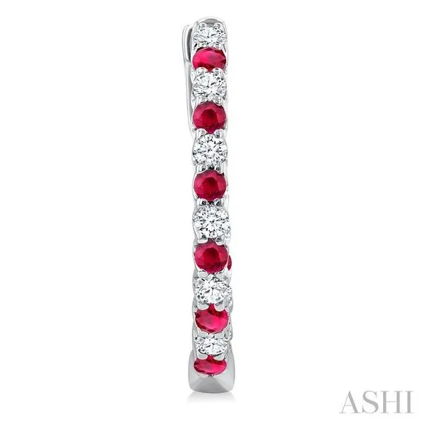 1.8 MM Ruby and 1/2 Ctw Round Cut Inside-Out Diamond Precious Hoop Earrings in 14K White Gold Image 2 Adler's Diamonds Saint Louis, MO