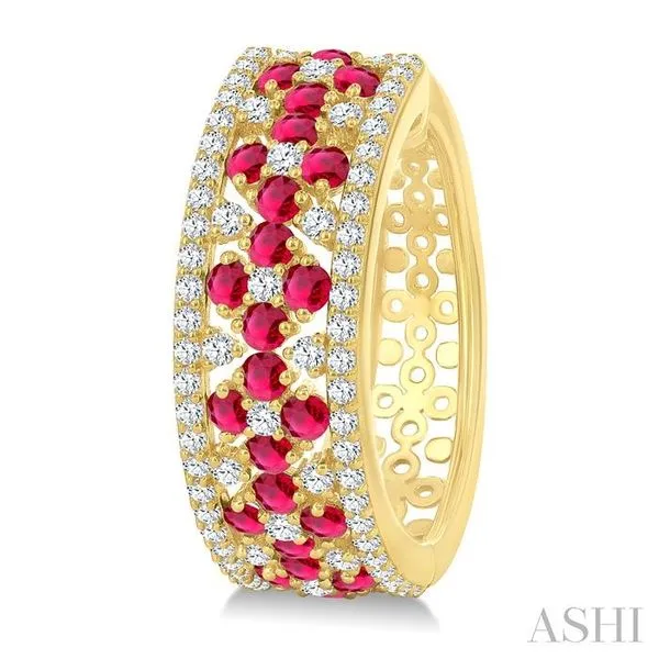 1.80 MM Round Cut Ruby and 3/4 Ctw Round Cut Diamond Precious Hoop Earrings in 14K Yellow Gold Image 3 Adler's Diamonds Saint Louis, MO