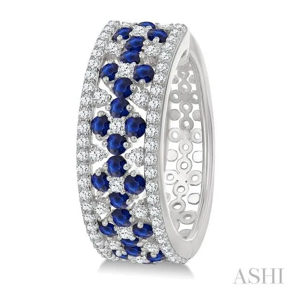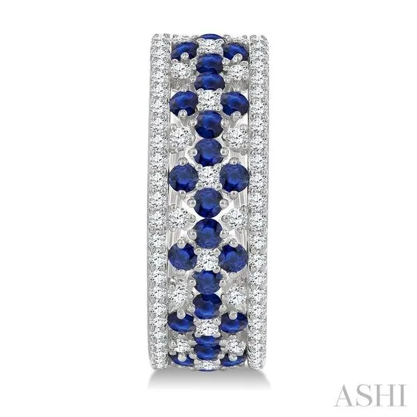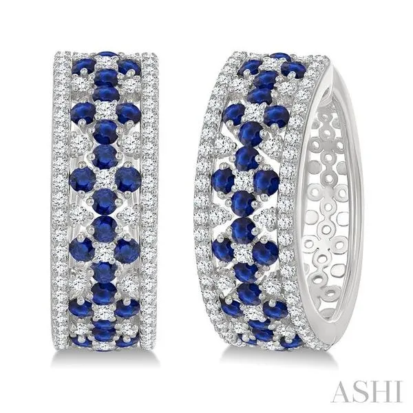1.80 MM Round Cut Sapphire and 3/4 Ctw Round Cut Diamond Precious Hoop Earrings in 14K White Gold Image 2 Adler's Diamonds Saint Louis, MO