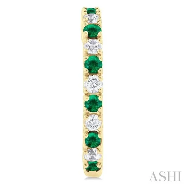 1.80 MM Round Shape Emerald and 1/4 Ctw Round Cut Diamond Precious Hoop Earring in 10K Yellow Gold Image 2 Adler's Diamonds Saint Louis, MO