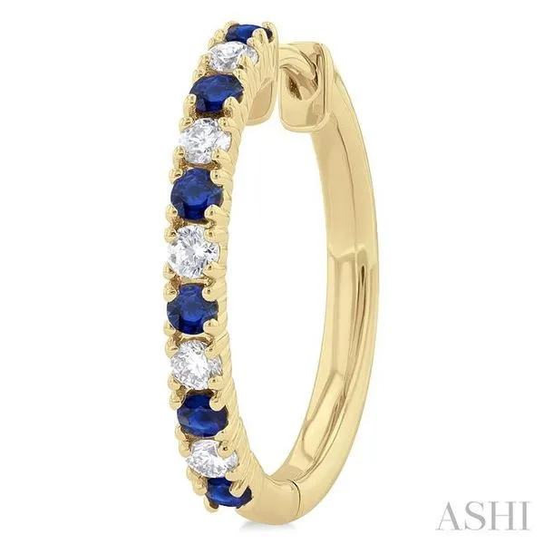 1.80 MM Round Shape Sapphire and 1/4 Ctw Round Cut Diamond Precious Hoop Earring in 10K Yellow Gold Image 3 Adler's Diamonds Saint Louis, MO