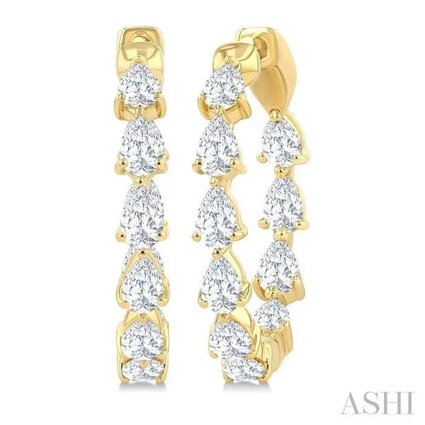 2 Ctw Inside-Out Pear Cut Diamond Fashion Hoop Earrings in 14K Yellow Gold Image 3 Adler's Diamonds Saint Louis, MO