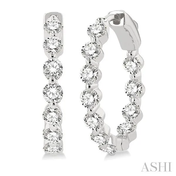 2 Ctw Inside-Out Single Prong Set Round Cut Diamond Hoop Earrings in 14K White Gold Image 4 Adler's Diamonds Saint Louis, MO
