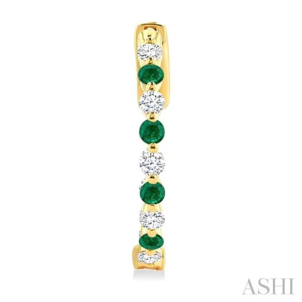 2 MM Round Cut Emerald and 1/2 Ctw Round Cut Diamond Precious Inside-Out Alternating Hoop Earrings in 14K Yellow Gold Image 2 Adler's Diamonds Saint Louis, MO