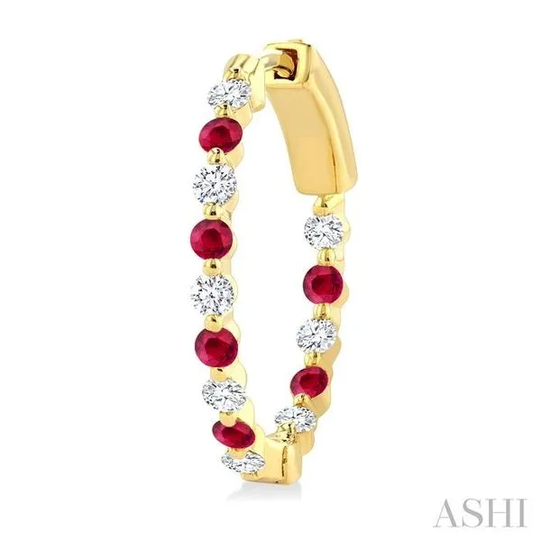 2 MM Round Cut Ruby and 1/2 Ctw Round Cut Diamond Precious Inside-Out Alternating Hoop Earrings in 14K Yellow Gold Image 2 Adler's Diamonds Saint Louis, MO