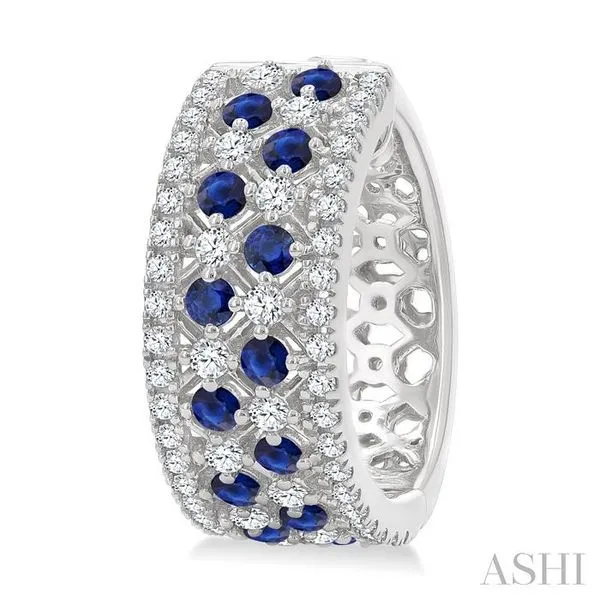 2 MM Round Cut Sapphire and 1 Ctw Round Cut Diamond Precious Hoop Earrings in 14K White Gold Image 2 Adler's Diamonds Saint Louis, MO