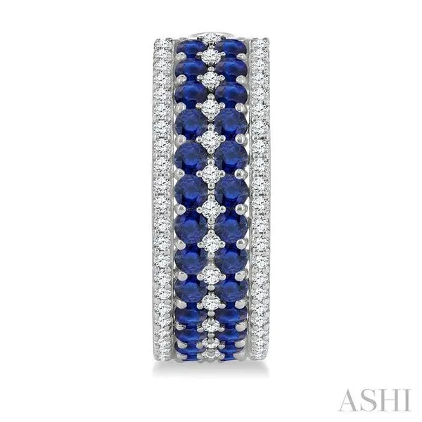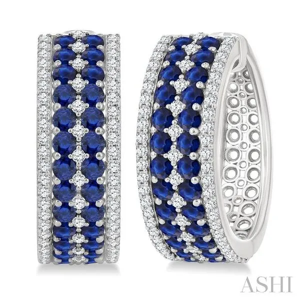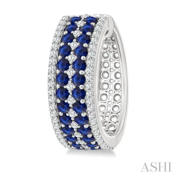 2 MM Round Cut Sapphire and 3/4 Ctw Round Cut Diamond Precious Hoop Earrings in 14K White Gold Image 2 Adler's Diamonds Saint Louis, MO