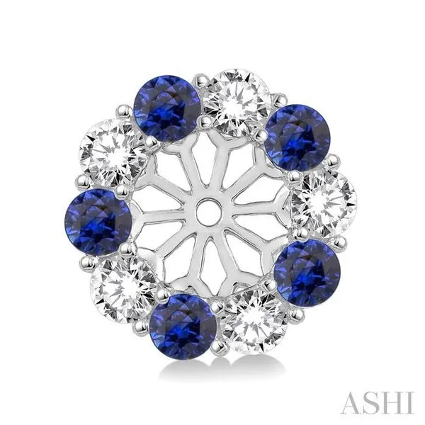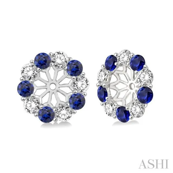 2.3 MM Round Cut Sapphire and 1/2 Ctw Round Cut Diamond Precious Earrings Jacket in 14K White Gold Image 2 Adler's Diamonds Saint Louis, MO