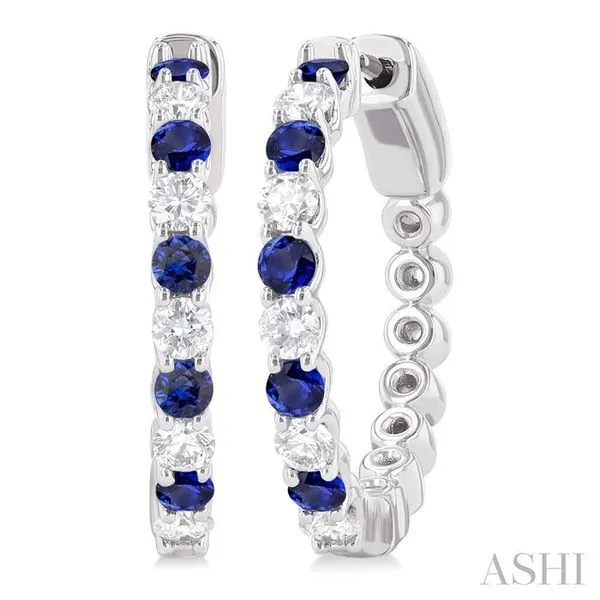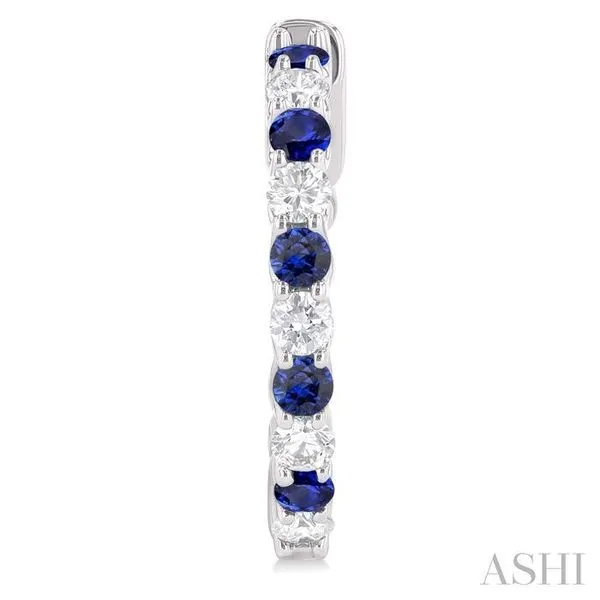 2.4 MM Round Cut Sapphire and 5/8 Ctw Round Cut Diamond Precious Hoop Earring in 14K White Gold Image 3 Adler's Diamonds Saint Louis, MO