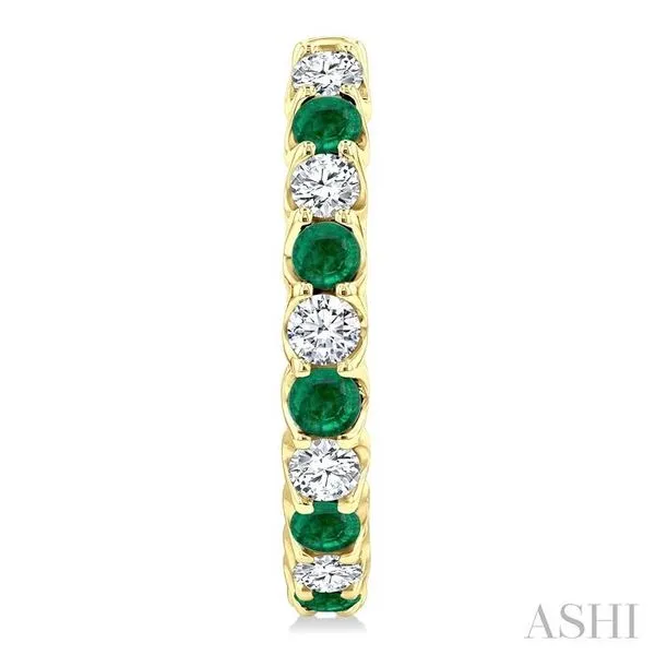 2.5 MM Emerald and 1 Ctw Round Cut Inside-Out Diamond Precious Hoop Earrings in 14K Yellow Gold Image 3 Adler's Diamonds Saint Louis, MO
