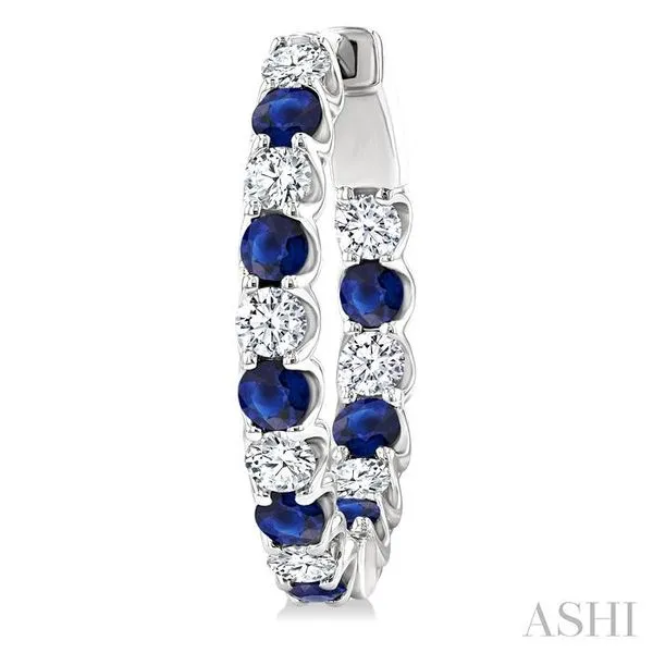 2.5 MM Sapphire and 1 Ctw Round Cut Inside-Out Diamond Precious Hoop Earrings in 14K White Gold Image 3 Adler's Diamonds Saint Louis, MO