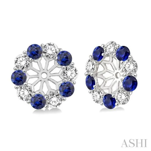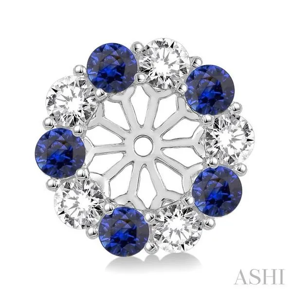 2.65 MM Round Cut Sapphire and 3/4 Ctw Round Cut Diamond Precious Earrings Jacket in 14K White Gold Image 2 Adler's Diamonds Saint Louis, MO