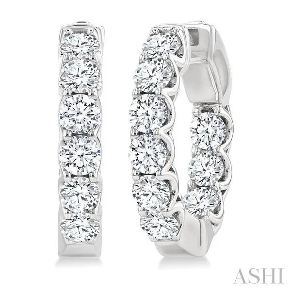 3 Ctw Inside-Out Embellished Round Cut Diamond Hoop Earrings in 14K White Gold Image 4 Adler's Diamonds Saint Louis, MO