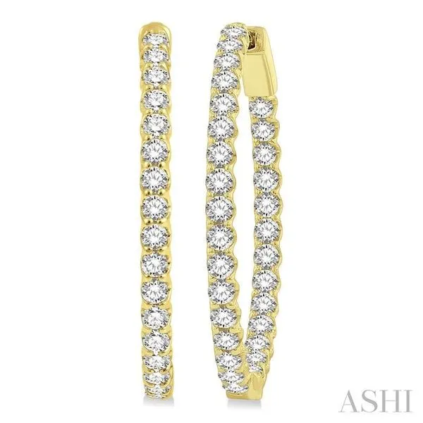 3 Ctw Inside-Out Round Cut Diamond Oval Shape Hoop Earrings in 14K Yellow Gold Image 4 Adler's Diamonds Saint Louis, MO