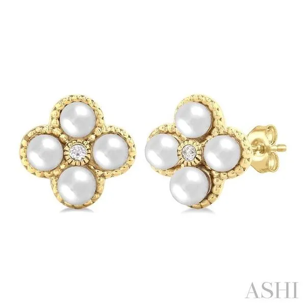 3 MM Clover Cultured Pearl and 1/50 Ctw Round Cut Diamond Fashion Earrings in 10K Yellow Gold Adler's Diamonds Saint Louis, MO