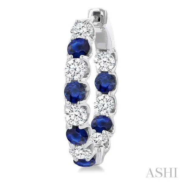 3.1 MM Sapphire and 1 5/8 Ctw Round Cut Inside-Out Diamond Precious Hoop Earrings in 14K White Gold Image 2 Adler's Diamonds Saint Louis, MO
